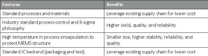 微機電系統第一工藝的氣密密封特征稱為密封,是在清潔的真空環境中在非常高的溫度下完成的.這導致諧振器的高穩定性.使用陶瓷封裝或晶片鍵合的傳統低溫封裝會在封裝中留下揮發性有機物和水殘留物,這會導致諧振器的質量負載和頻率漂移.微機電系統第一與EpiSeal是唯一被證明的制造工藝,它生產的諧振器具有與石英晶體相當或超過石英晶體的穩定性.