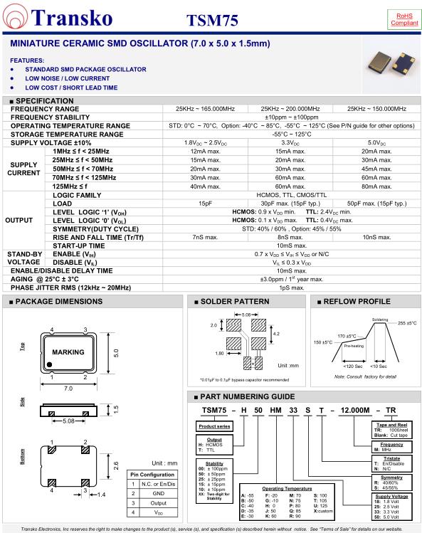 Transko晶振1993年在加利福尼亞州開設(shè)晶振生產(chǎn)工廠.為滿足客戶需求便以Transko晶振為公司品牌,開始生產(chǎn)成品石英晶體和石英晶體振蕩器,以及有源晶振等元件.Transko晶振,TSM75晶振,TSM75-H50HM33ST-12.000-TR晶振.