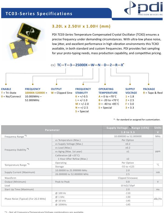 Wi2Wi晶振,TC03晶振,TC-T-3-24000X-W-N-D-2-R-X晶振,小型SMD有源晶振,從最初超大體積到現在的7050mm,6035mm,5032mm,3225mm,2520mm體積,有著翻天覆地的改變,體積的變小也使產品帶來了更高的穩定性能,接縫密封石英晶體振蕩器,精度高,覆蓋頻率范圍寬的特點,SMD高速自動安裝和高溫回流焊設計,Optionable待機輸出三態輸出功能,電源電壓范圍:1.8V~5V,高穩定性,低抖動,低功耗,主要應用領域:無線通訊,高端智能手機,平板筆記本WLAN,藍牙,數碼相機,DSL和其他IT產品的晶振應用,三態功能,PC和LCDM等高端數碼領域,符合RoHS/無鉛.