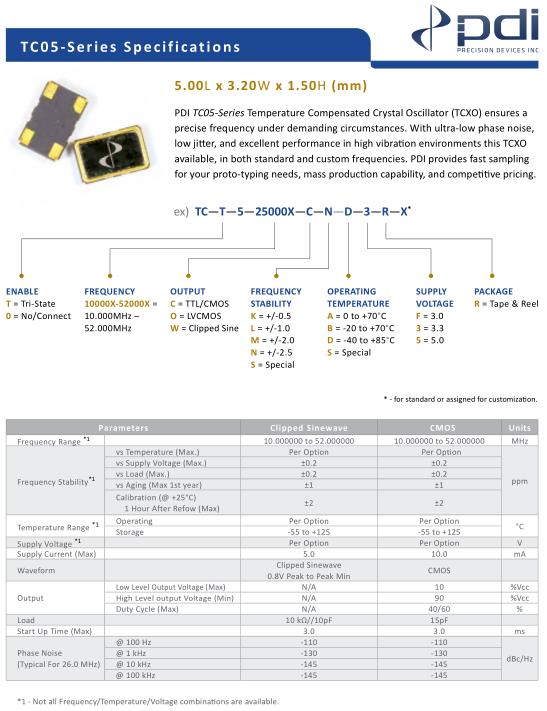 Wi2Wi晶振,TC05晶振,TC-T-5-26000X-C-N-D-3-R-X晶振,5032mm體積的石英晶體振蕩器,有源晶振,該產品可驅動2.5V的溫補晶振,壓控晶振,VC-TCXO晶體振蕩器產品,電源電壓的低電耗型,編帶包裝方式,可對應自動高速貼片機自動焊接,及IR回流焊接(無鉛對應),為無鉛產品,超小型,質地輕.產品被廣泛應用到集成電路,程控交換系統,無線發射基站.