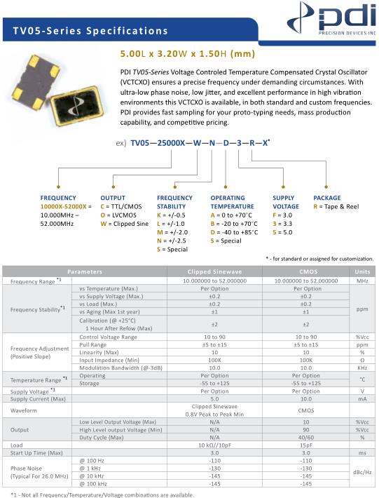 Wi2Wi晶振,TV05晶振,TV05-20000X-W-N-D-3-R-X晶振,5032mm體積的石英晶體振蕩器,有源晶振,該產品可驅動2.5V的溫補晶振,壓控晶振,VC-TCXO晶體振蕩器產品,電源電壓的低電耗型,編帶包裝方式,可對應自動高速貼片機自動焊接,及IR回流焊接(無鉛對應),為無鉛產品,超小型,質地輕.產品被廣泛應用到集成電路,程控交換系統,無線發射基站.