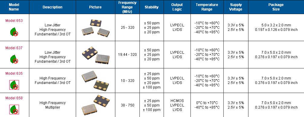 頻率公差@ 25°C | ±10ppm, ±15ppm, ±20 ppm, ±30 ppm, ±50 ppm | ||||
