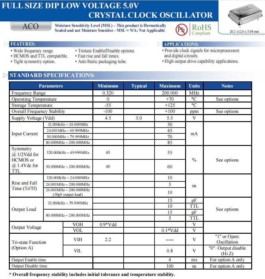 ACO-40.000MHZ-EK | Abracon晶振 | ACO | XO (Standard) | 40MHz | 5V | -20°C ~ 70°C |