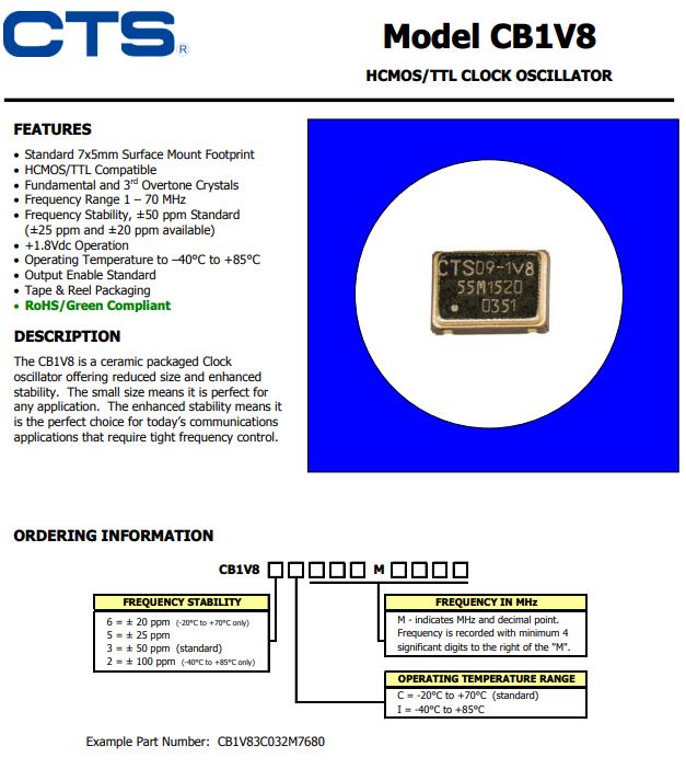更多>>CTS高性能的時(shí)鐘振蕩器CB1V8-3I-30M0000具備多元化解決方案