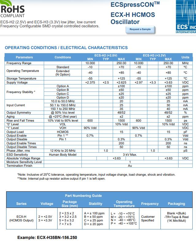 ECX-H25BN-250.000 | ECS晶振 | ECSpressCON™ ECX-H | 250MHz | -40°C ~ 85°C |