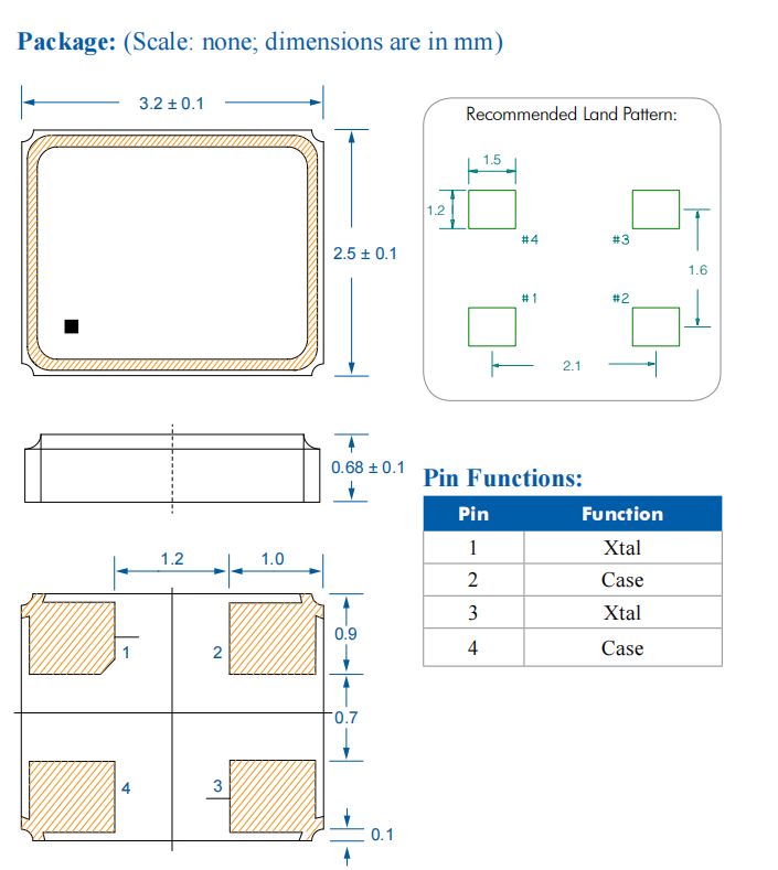 微型3.2 x 2.5mm陶瓷封裝