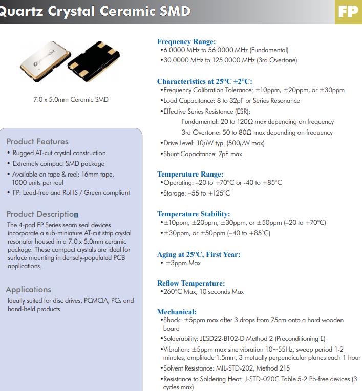 FP0800056Z | Diodes晶振 | SaRonix-eCera™ FP | MHz Crystal | 8MHz | ±30ppm |