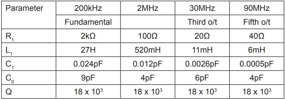 負載電容:晶體可以由制造商在fr校準,其中 它們表現為電阻性(或fs,非常接近fr),或用于諧振 對于容性負載,它們當然表現為感性。 后一種情況稱為負載諧振,如所示 用符號fL表示的一般術語;更具體地說,符號f30 例如,代表晶體的頻率 30pF容性負載下的諧振。