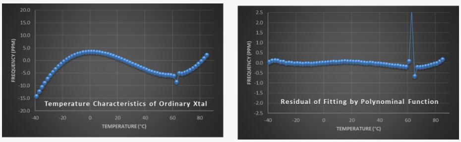 未補償的AT切割晶體可以用公差來規定 –10°C至60°C范圍內低至5ppm,要求更大的容差 對于更寬的溫度范圍,如圖3所示 AT切割頻率-溫度曲線的典型系列。這些曲線 可以用三次方程來表示,并且非常依賴于 石英毛坯的切割角度。零度點 系數被稱為上下轉折點。一個轉彎 通過選擇切割角度,可將點放置在需要的位置;這 另一個是固定的,因為兩者都是對稱的 20–30°C范圍。轉折點之間的斜率變為 隨著它們一起移動而變小。晶體設計用于 烤箱被切割,以便上部轉折點與烤箱重合 工作溫度。石英晶體諧振器極高的Q值相對較小的尺寸和出色的溫度穩定