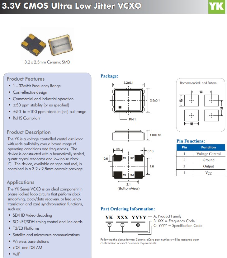更多>>YK系列VCXO控制電壓功能用于與另一個(gè)時(shí)鐘或數(shù)據(jù)信號(hào)同步
