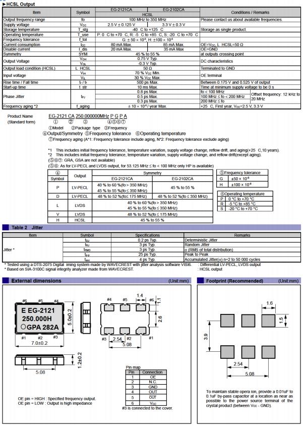 Q3805CA10010300 | EG-2121CA | 125.000000 MHz | 7.00 x 5.00 x 1.20 mm | LVDS | 2.375 to 2.625 V | -5 to 85 °C |