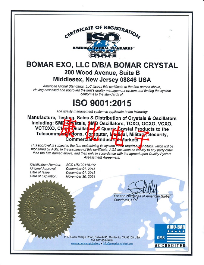 在90年代初的強勁增長期間,Bomar與少數(shù)精選的亞洲工廠建立了緊密的合作關(guān)系,以生產(chǎn)符合Bomar規(guī)格的產(chǎn)品.這些關(guān)系是在Bomar對其流程和產(chǎn)品進行認證后才建立的.今天,Bomar擁有大量晶體,時鐘振蕩器,VCXO和溫補晶振的低成本資源,延續(xù)了我們50年來致力于提供高性能頻率控制解決方案的承諾,這些解決方案在價格,質(zhì)量和客戶支持方面達到或超過客戶的期望.