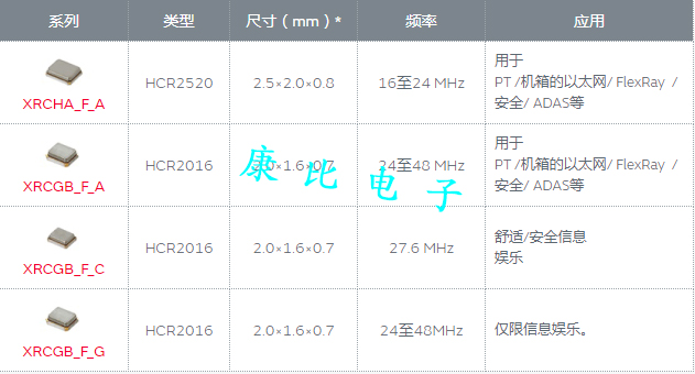 HCR2016晶振同級(jí)別型號(hào)