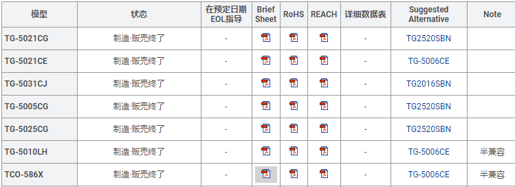 更多>>康比電子大統計所有愛普生晶振停產產品型號規格系列