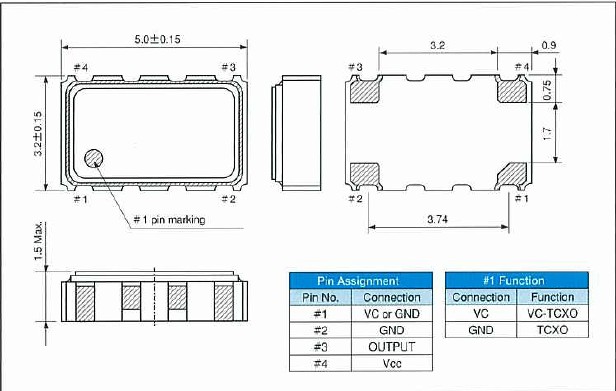 方形有源晶振引腳分布: