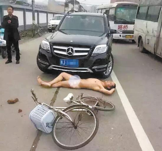 很多人想出名,要獲得錢財,其實這些都很正常畢竟我們每個人都得生活誰都想讓自己過得好點.但是我們需要通過自己的努力勞動去創造,我們需要講究方法.近日有一名男子通過“奇葩”的方法出名了,可惜錢財沒有得到反被拘留了,想想這哥們也是夠悲催的.據媒體報道:4月10日上午12:00左右浙江溫嶺一奔馳女司機一人開車回家的路上,竟然遇到一名年輕男子裸體碰瓷.在司機意識到該男子是碰瓷的時候已經剎車并后退,誰料該男子竟然睡到了車輪下.后來被圍觀者報警并且被刑拘才得以平復.整個事件整的是讓人膽戰心驚.其實這時候該男子已經把命運交給別人了,一旦造成傷亡按照我國交通法規定,該男子應當承擔70%的責任.并且如果附件有監控記錄司機可以無責任.