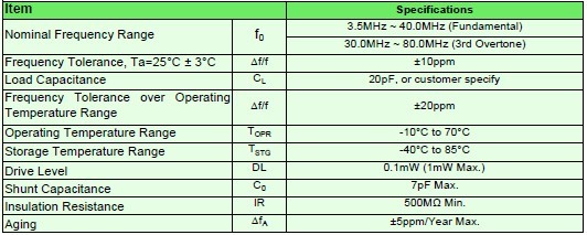 諧振器晶體規(guī)格