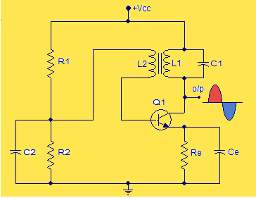 次級繞組線圈"L2"的方向使得其兩端的電壓與初級(L1)兩端的電壓相反180°.因此,反饋電路產(chǎn)生180°的相移,Q1晶體管產(chǎn)生另一個180°的相移.結(jié)果,在輸入和輸出之間獲得總相移.這是正反饋和持續(xù)振蕩的極其必要條件.