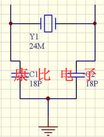 Cstray是電路中的雜散電容,通常為2-5pF.如果振蕩頻率較高,應增加電容值以降低頻率.如果頻率低,電容值應該降低,從而提高振蕩頻率.當CL=20pF時,C1和C2將分別約為27-33pF,具體取決于雜散電容的大小.