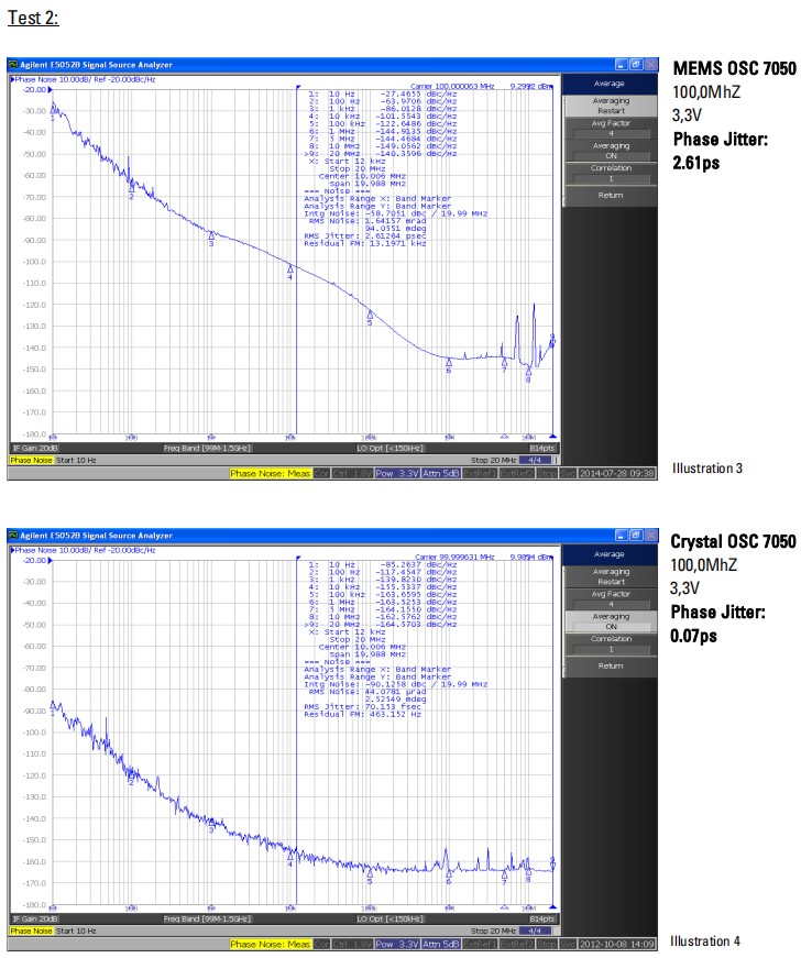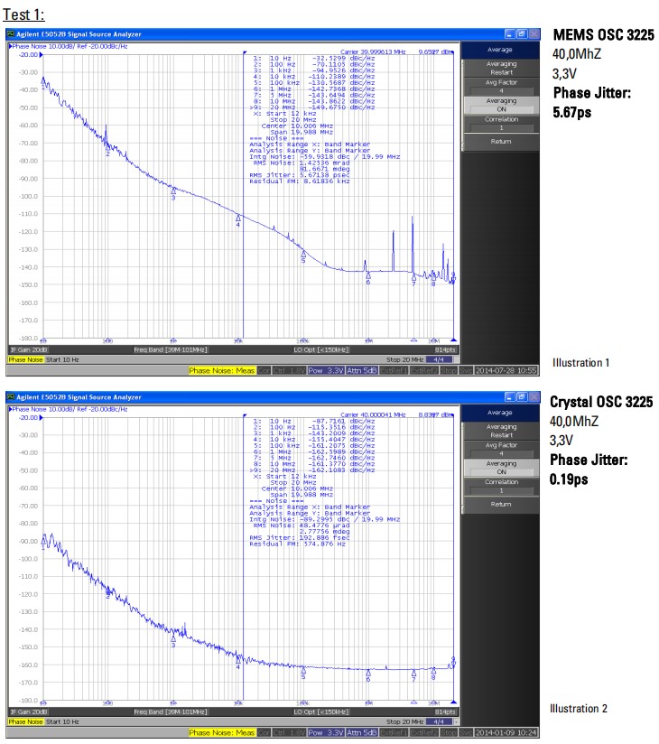 我們測量了一個晶體振蕩器和一個MEMS振蕩器,并比較了四個參數,每個參數都被認為對通信、工業和消費電子設備的設計至關重要。