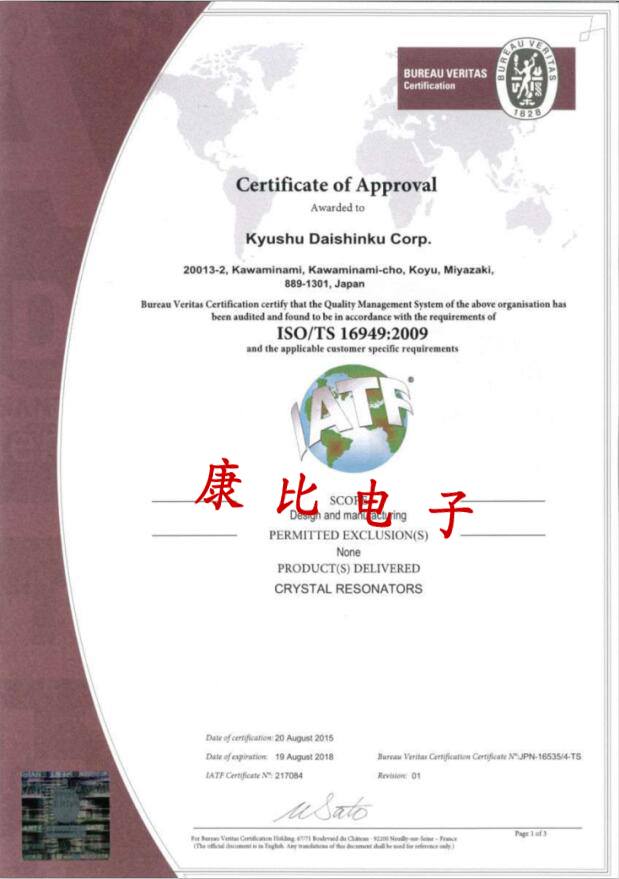科技的不斷高速發展,導致所使用到的電子元件的需求量也是不斷的增長,同時制造商也是不斷增長,即使如此,日本大真空株式會社在晶振行業中仍舊保持著不動搖,無法撼動的地位,KDS晶振集團自1959年成立以來,大真空是“信任的人”,三個被稱為“信得過企業”,“信任”組,哲學的“信得過產品”創造產品,致力于專業生產晶振,SMD晶振,石英晶體振蕩器,差分晶振,溫補晶振等水晶頻率元件,以滿足時代的尖端的需求我們鼓勵并與世界各地的客戶建立了信任關系.作為一家在全球運營的石英晶振器件制造商,將開發考慮到全球環境的石英晶體諧振器件,并為實現更方便舒適的下一代電子社會做出貢獻,生產的KDS晶振產品獲得了國際ISO/TS16949:2009認證,該認證是對汽車生產和相關配件組織應用ISO9001:2008的特殊要求,其適用于汽車生產供應鏈的組織形式.目前,國內外各大整車廠均已要求其供應商進行ISO/TS16949:2009認證,確保各供應商具有高質量的運行業績,并提供持續穩定的長期合作,以實現互惠互利.
