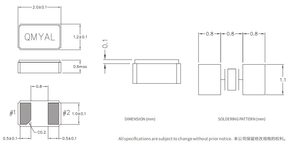 SMLF-2012,Interquip無源晶振,鐘表電子晶振,6G無線晶振,32.768K貼片晶振,可穿戴設(shè)備晶振,尺寸圖