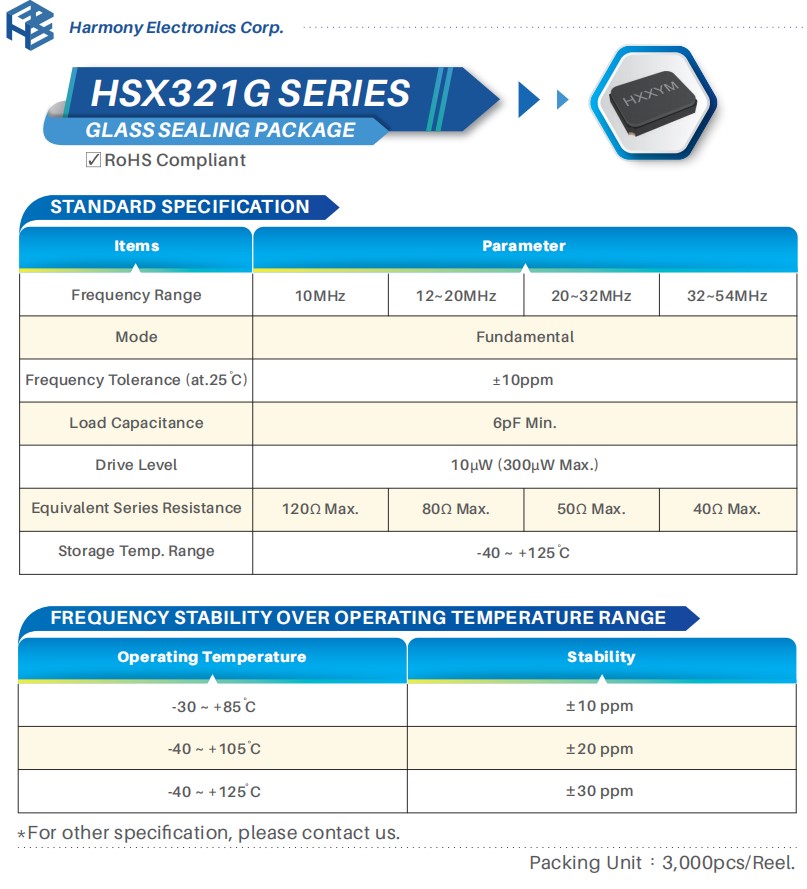 HELE石英晶體諧振器HSX321G,3225mm石英晶振,汽車電子6G晶振,小體積晶振,高品質晶振,參數表