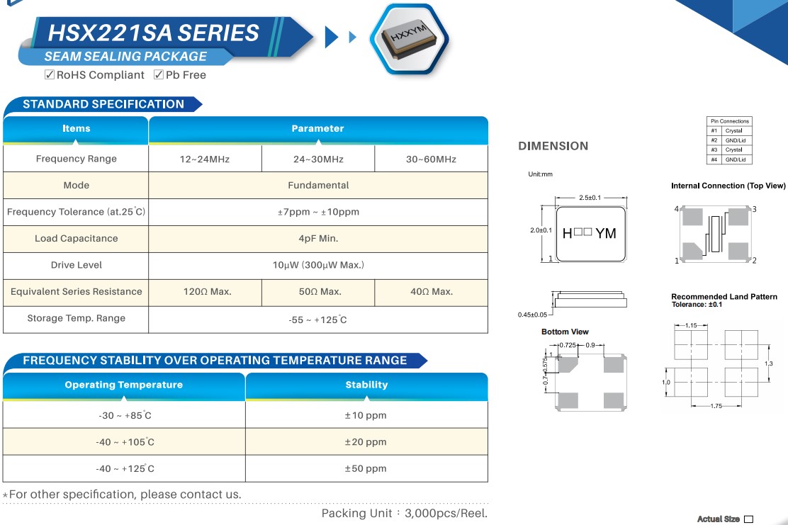 X2B030000FA1H-X | HSX221SA | HELE加高 | SMD Crystal Resonators SMD-2520 RoHS |