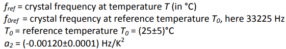 如果參考晶體RKOV206與傳感器晶體RKOV206結合使用,兩個晶體成對使用,頻率差約為550Hz@25.如果兩個晶振處于相同的溫度下,RKOV206和RKOV206之間產生的頻率差(拍頻)如圖2所示(綠色虛線).拍頻的溫度系數如圖3所示.它比僅RKTV頻率的溫度系數(25°C)高15倍. 實際應用