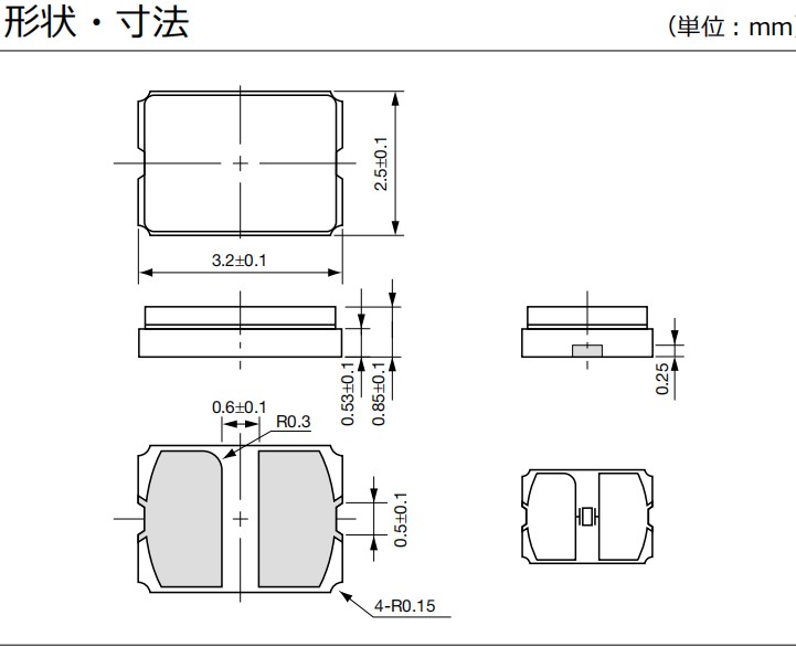 24MHz,CX3225GA24000D0PTVCC,3225mm,8pF,-40℃至150℃,尺寸圖