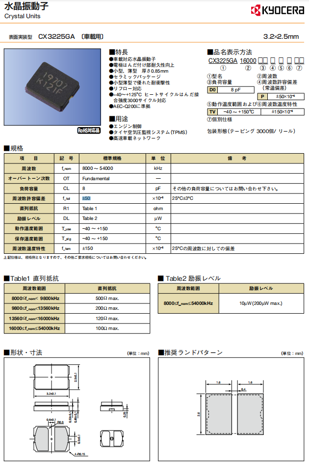 CX3225GA16000D0PTVZ1 | CX3225GA | 16MHz | -40°C ~ 150°C | 2-SMD, No Lead |
