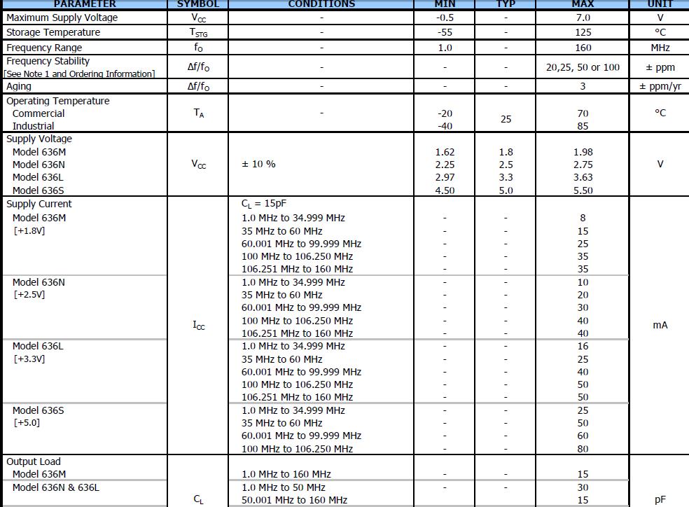 頻率老化程度 | f_age | ±3x10-6 | +25±3°C,第一年 |