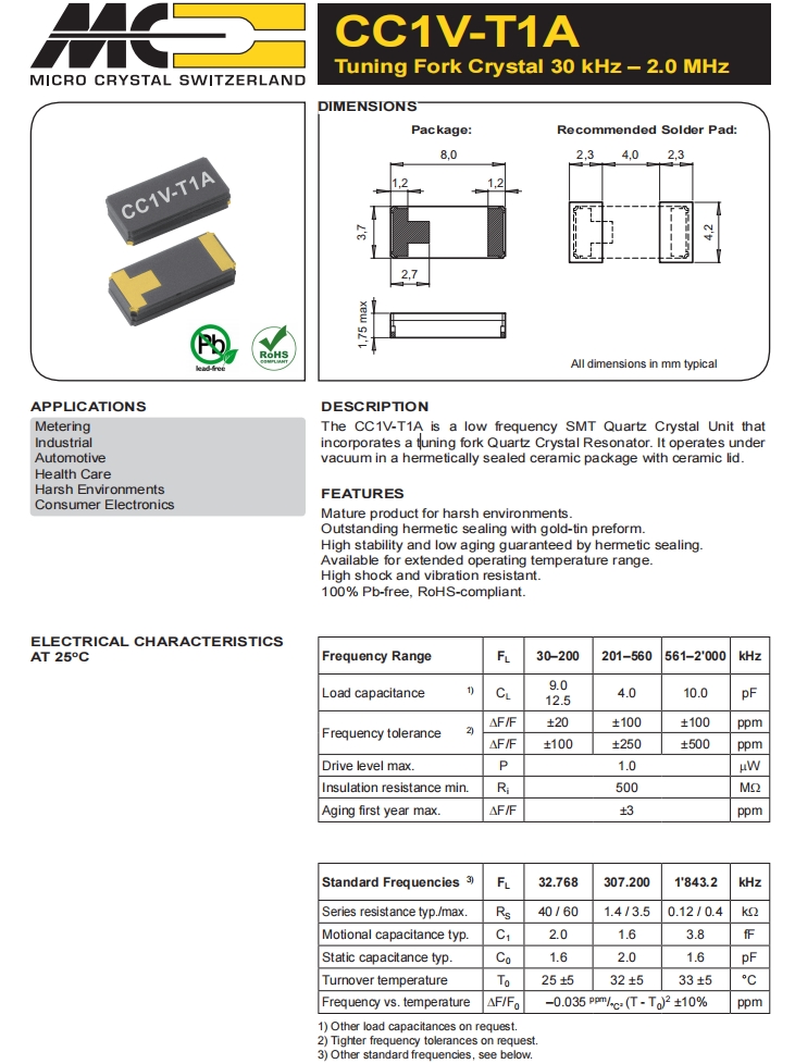 CC1V-T1A-32.768kHz-12.5pF-30PPM-TA-QC/汽車(chē)應(yīng)用6G晶振/MicroCrystal,尺寸8038mm,頻率為32.768KHZ,瑞士微晶晶振,瑞士進(jìn)口晶振,MicroCrystal,32.768K音叉晶振,SMD晶振,陶瓷晶振,計(jì)時(shí)器晶振,兩腳貼片晶振,無(wú)源晶振,水晶振動(dòng)子,8038mm貼片晶振,32.768KHZ無(wú)源晶體,無(wú)源貼片晶振,輕薄型晶振,環(huán)保晶振,計(jì)量專用晶振,工業(yè)應(yīng)用晶振,汽車(chē)應(yīng)用晶振,醫(yī)療保健專用晶振,高性能晶振,高質(zhì)量晶振,低損耗晶振。