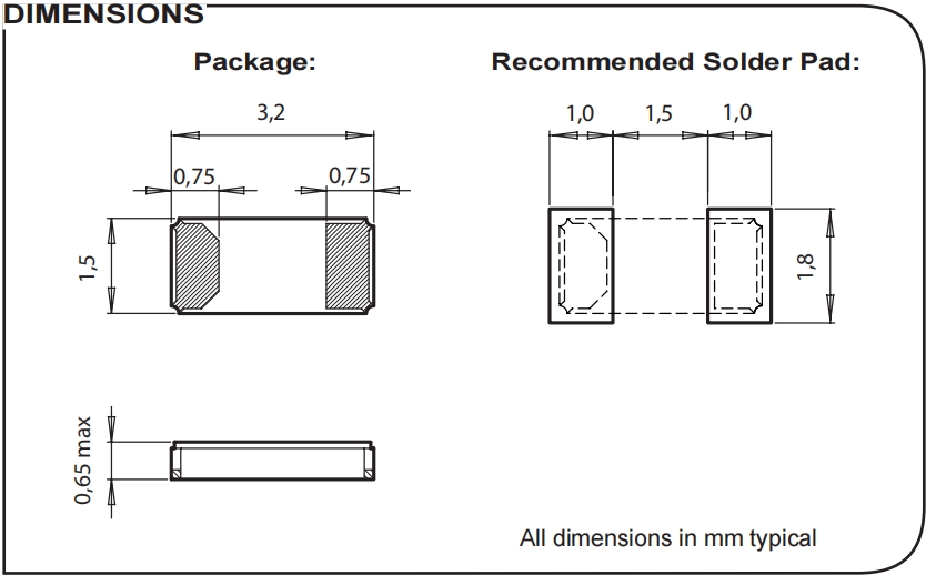 瑞士微晶3215晶振,計量6G晶振,CM7V-T1A-32.768kHz-12.5pF-100PPM-TB-QC 尺寸圖