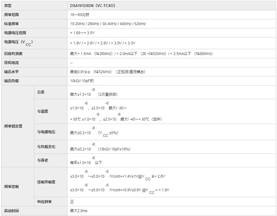 說到KDS晶振大家都不陌生,日本大真空品牌,成立到現在有六十年歷史,不管是產品質量還是服務口碑都是得到公認.那么究竟要說KDS中的哪一款產品呢?就像大家伙說的搞得神秘,確實也并非神秘,只是要夸贊品牌中的DSA1612SDN晶振,大家口中的壓控溫補晶振,高端元器件產品. 通過表格可以了解到DSA1612SDN晶振體積大小為1612mm,擁有穩定的電源電壓,是個小型有源晶振.如果你對晶振只是了解的更多一點,看到VC-TCXO應該會知道壓控溫補晶振,具有強大溫補功能,可以適用于眾多消費電子,像這種壓控溫補級別的晶振,往往在通訊產品上用的居多,其實也并不是說不可能用在別的電子產品,只是介于價格的因素,是絕不會亂用在別的電子產品.