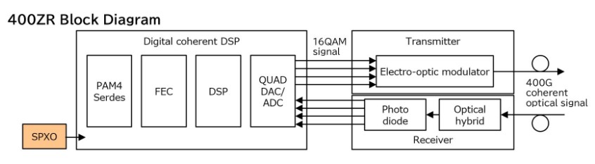 400ZR / 800ZR是用于400/800 Gbps高速通信的相干光技術。相干光調制數據,允許更高的數據速率。800ZR現在正致力于定義。6G光模塊應用晶振X1G006131000200高穩定性振蕩器