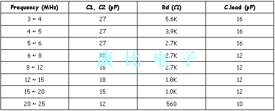 雜散電容可在2pF到6pF之間變化. 1. 當(dāng)在C-MOS振蕩電路中使用時(shí),電路圖中的Rd是必不可少的,以將驅(qū)動(dòng)電平保持在規(guī)定值內(nèi)并獲得穩(wěn)定的振蕩頻率.