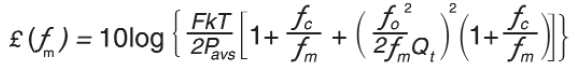 其中Q1是電路的負載Q,m是來自載波的頻率,c是閃爍噪聲角頻率,o是載波(振蕩器)頻率,T是開爾文溫度,Paves是通過諧振器的功率,F是有源器件的噪聲系數,k是Boltzmann常數.