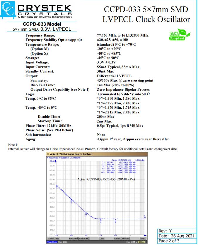 CVPD-970X-622.080 | CRYSTEK振蕩器 | CVPD-970 | VCXO | 622.08MHz | ±25ppm | -40°C ~ 85°C |