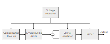 TCXO調節振蕩器的頻率以補償由于溫度變化而發生的變化.為實現這一目標,TCXO中的主要元件是壓控振蕩器(VCXO).它連接到一個檢測溫度的電路,并向振蕩器施加一個小的校正電壓,如下所示.