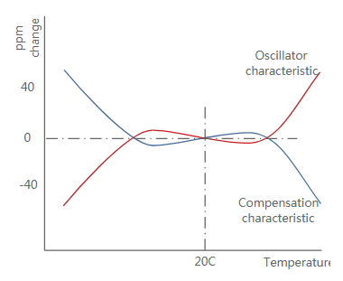 補償網絡:補償網絡是整個系統運行的關鍵.上面可以看到有源晶振的溫度頻率響應的近似曲線.實際曲線可以近似以3階多項式表達式的形式表示,盡管更精確的表示考慮了一些非線性并且計算得接近5階多項式.補償網絡需要檢測溫度并產生與此相反的電壓.