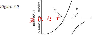 從圖2.0可以明顯看出,石英晶體單元有兩個零相位頻率.第一個或兩個頻率中的較低一個是串聯諧振頻率,通??s寫為Fs.零相位兩個頻率中的第二個或更高的頻率是并聯或反諧振頻率,通常縮寫為Fa.串聯和并聯諧振頻率在振蕩器電路中都表現出電阻性.在串聯諧振點,電阻最小,電流最大.
